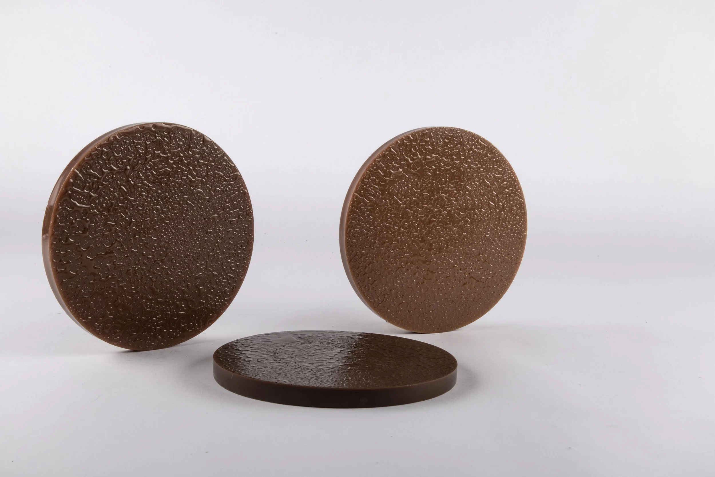 A series of woodblock prints, carved with CNC machinery that echoes the irrigation arm’s rotation, render the formal variations of the circles.