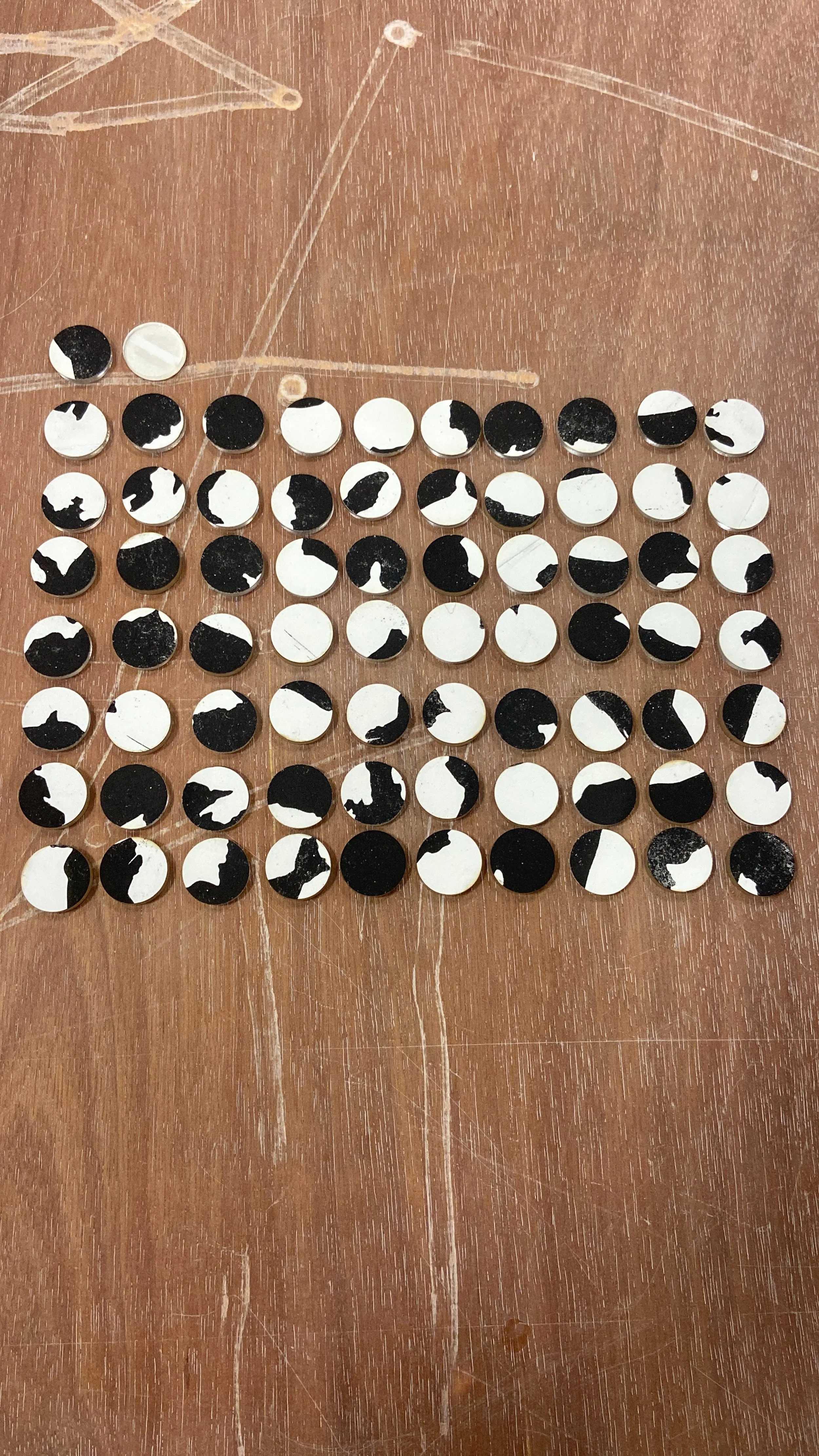 The phrase "digital cartography" is often repurposed and reinvented in order to tell a story. In Alloush’s work, the term is frequently redefined through a variety of aerial images, abstract line drawings, and a spherical world rendered on a flat surface. Since his last visit to his home country of Syria in 2010, the uncertainty of returning has continued to grow, prompting a deeper examination of his relationship with the Syrian border. In 36° 50', Alloush contemplates the porous and constructed nature of geographical boundaries. What intrigues him most is the deceptively simple yet deeply complex line on a map a line that, when closely observed, carries weighty implications of space, identity, and politics. His objective is to deconstruct and reconstruct this form, rendering it fragile and movable, yet still undeniably present. In doing so, 36° 50' becomes a quiet yet profound meditation on the hope for a world where borders are open. Each etching in this series is created to correspond with the time and destination of the artist’s travels, reflecting his personal experience in each country he visited. The line drawings are composed of fragmented borders measured, scaled, and rearranged to form a larger, imagined country. This composite nation is a poetic and speculative geography, one that merges many into one, challenging the rigidity of existing cartographic logic and proposing a borderless collective identity.